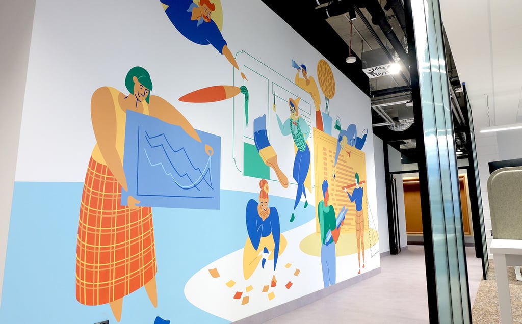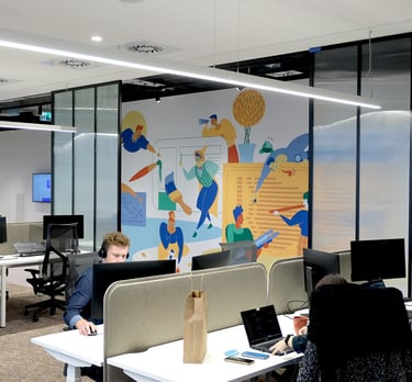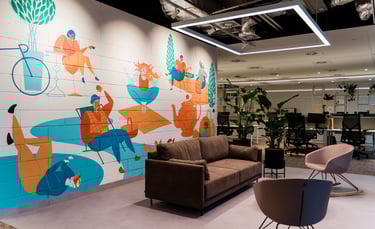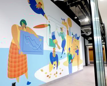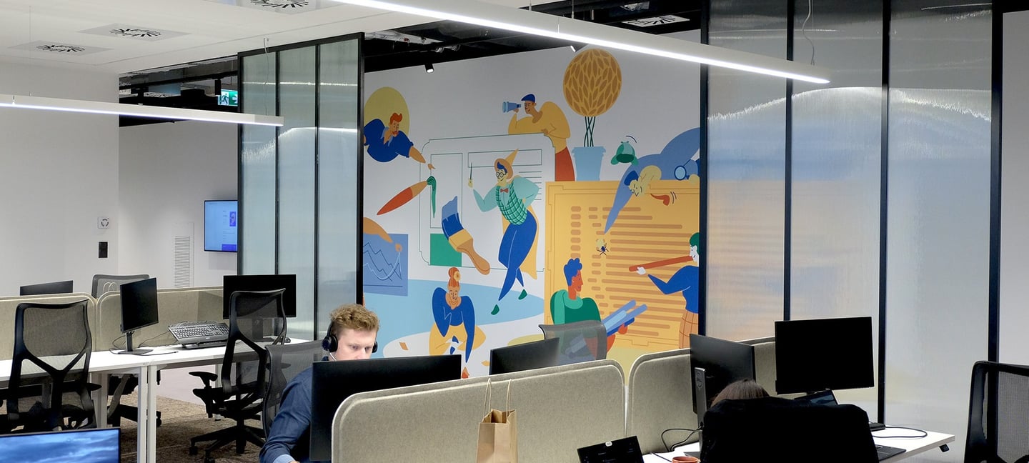 These characters were intended to appear in various contexts, including recruitment, internal documents, merchandise, and even office murals. The character anatomy was designed to allow for future animations. We expanded the color palette beyond the branding colors to create a more welcoming message. The ideation and execution process involved multiple individuals, including Brits, managers, and representatives of specific roles.