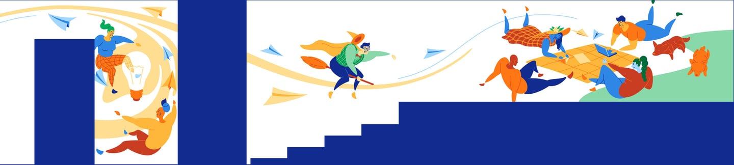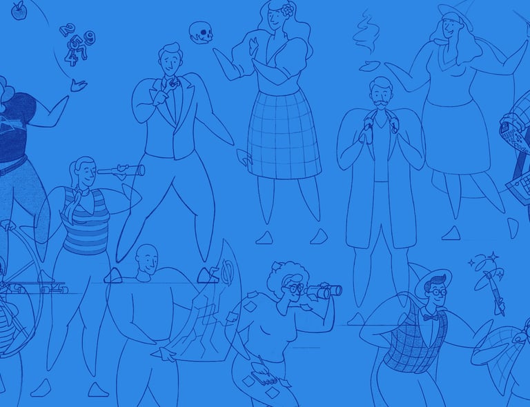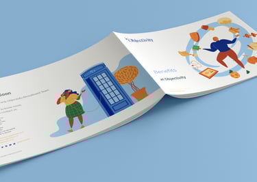 The project aimed to create an illustrative style for internal communication. During the design process, the idea emerged to feature a person as the central element. Consequently, we created a character for each role in the company, with distinctive traits and attributes corresponding to their positions. Emphasizing Objectivity's British identity, we incorporated references and elements from British culture and history.